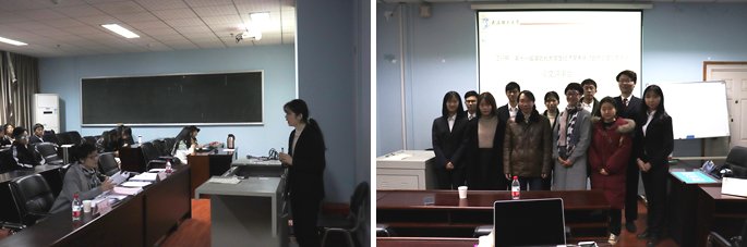 本科生第二会场由来自武汉大学的何国华教授、我校喻平教授担任评委。参赛者围绕养老保险、非农就业与中国农户收入不平等、老字号品牌何去何从等极具特色的经济问题进行探讨。选手们搜集调查了大量数据进行分析,并运用多种数学模型对各个经济问题进行解释说明。其中十号选手的“养老保险、非农就业与中国农户收入不平等”的论文答辩选题具有现实意义,逻辑清晰严谨,得到了两位教授的好评。会议结束前,喻平教授对会议进行点评,对第二会场的本科生表现十分满意,他表示:“本届参赛选手的实力有明显提升,十位选手的论文总体概括为新、深、精,希望同学们再接再厉。”