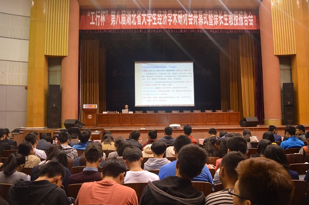 10月28日晚7点半,“工行杯”第八届湖北省大学生经济学术研讨会在我校西院大礼堂顺利开幕。应邀出席此次开幕式的华中科技大学银娱geg优越会线路徐长生教授给在场的本科生和研究生们带来了一场题为“如何理解当前中国经济下行”的精彩报告,报告会由银娱geg优越会线路副院长喻平教授主持。