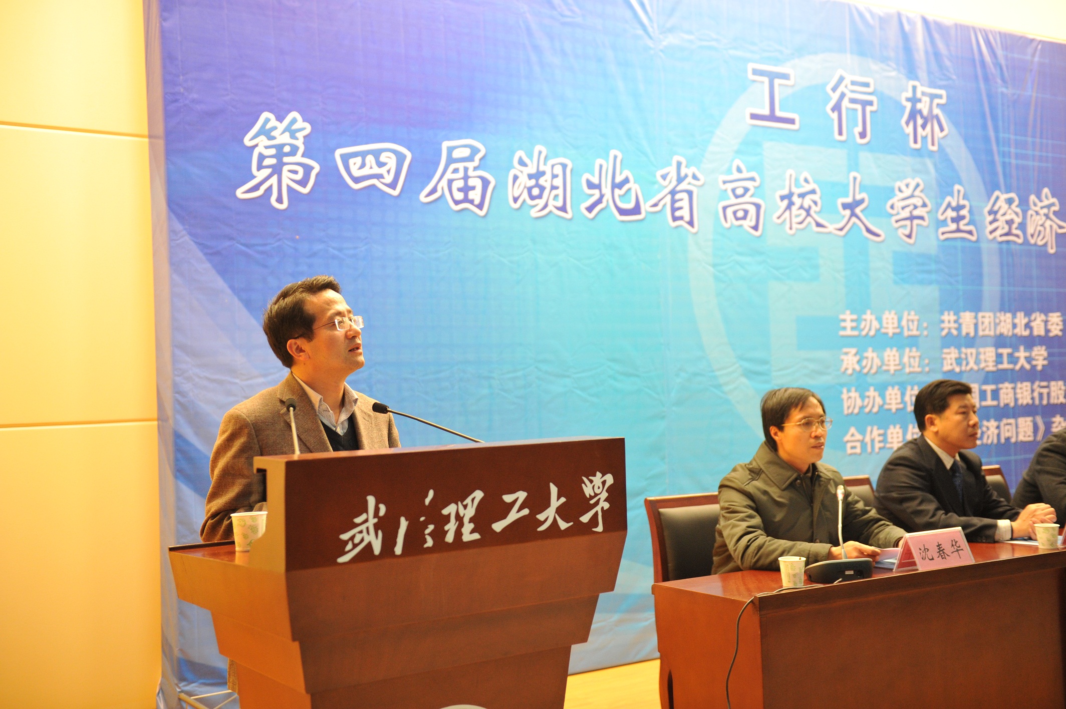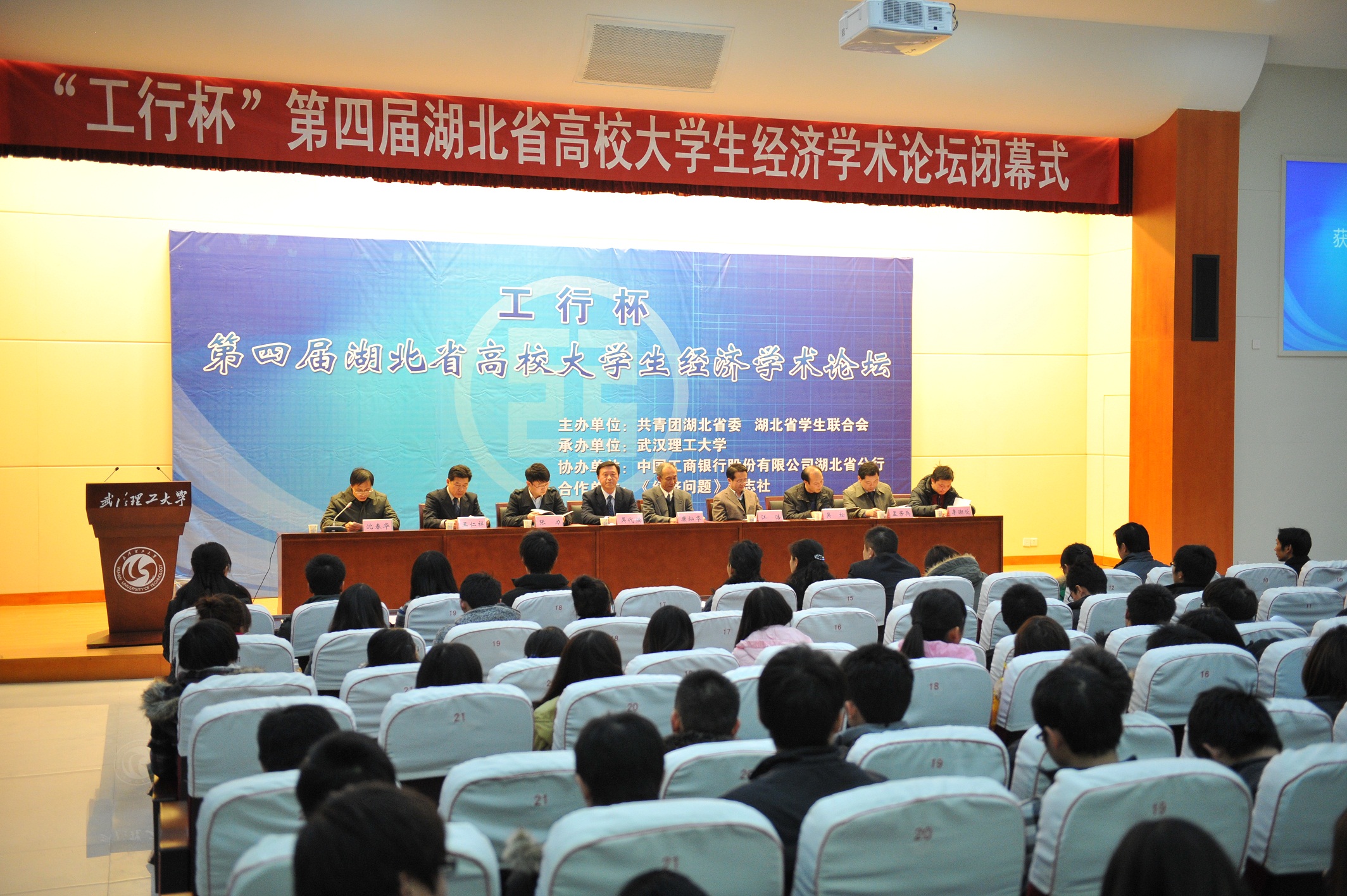 12月22日晚,历时近半年的“工行杯”第四届湖北省高校大学生经济学术论坛在我校圆满落幕。共青团湖北省委党组成员、纪检组长江浩,中国工商银行股份有限公司湖北省分行副行长吴代强,武汉理工大学副校长康灿华,《经济问题》杂志社以及来自武汉大学、华中科技大学、华中师范大学、中南财经政法大学、等十余所兄弟高校嘉宾及部分媒体代表出席了论坛闭幕式。