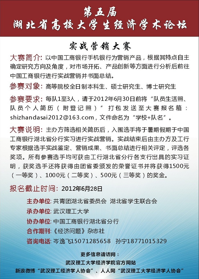 关于举办“工行杯”第五届湖北省高校大学生经济学术论坛实战营销大赛的通知