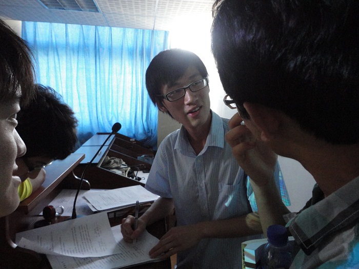 图为岑逸飞会长与各位参赛选手作细致讲解