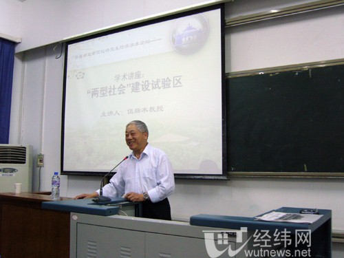 5月19日,湖北省首届大学生经济学术论坛第二场分会场讲座在武汉大学举行。武汉大学经济与管理学院教授,博士生导师伍新木作讲座——“两型社会”建设试验区。