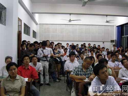 讲座的最后,伍教授讲了自03年起武汉市申报国家综合配套改革试验区的台前幕后。“我给你们讲一个小故事。”这样的话题转换不时引起场下同学会意的笑声。
