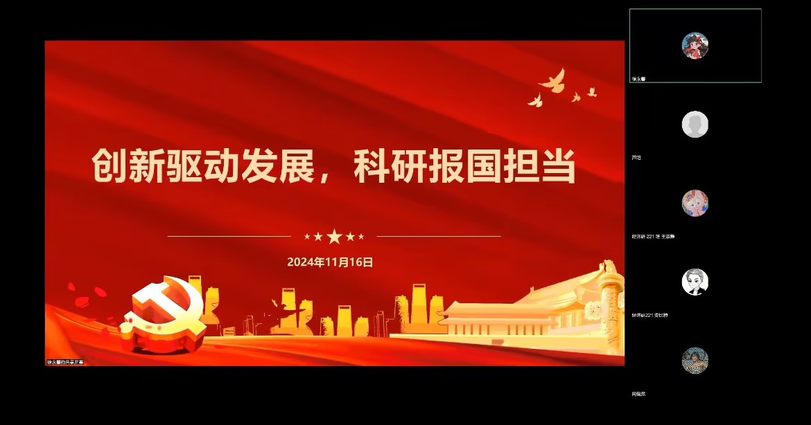 为进一步深化对创新驱动发展战略的理解与实践,银娱geg优越会线路专硕一党支部于2024年11月16日下午3时通过腾讯会议平台举办了一场以“创新驱动发展、科研报国担当”为主题的专题活动。此次活动旨在探讨创新驱动发展战略的背景、内涵及其在实际工作中的实施路径,支部全体成员参会。