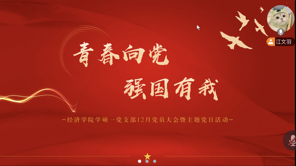 12月18日晚8时30分,银娱geg优越会线路学硕一支部通过腾讯会议召开了12月党员大会暨主题党日活动。会议由党支书记江文雨主持,主题为“青春向党,强国有我”。此次活动旨在激发党员同志们的爱国情怀和责任担当,鼓励大家紧密围绕党和国家的发展大局,坚定不移地走中国特色社会主义道路,充分发挥青年党员在实现中华民族伟大复兴中的重要作用。