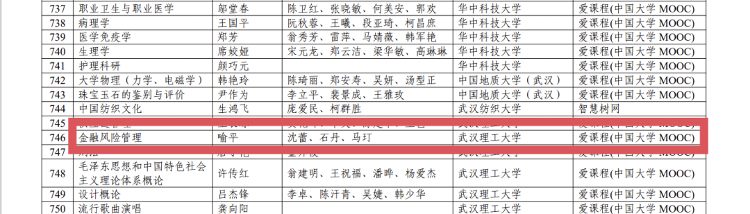 喻平教授教学团队(沈蕾老师、石丹老师、马玎老师)建设的《金融风险管理》获批第二批国家级一流本科课程。