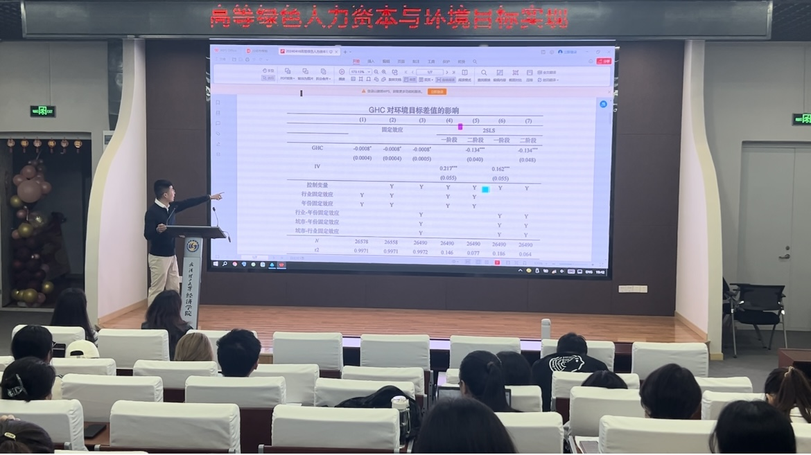 在互动交流环节,多名学生就“什么是绿色人力资本”、“如何进行结果分析”等问题与石教授开展了深入的交流。 石教授悉心热情地一一解答同学们的疑惑。