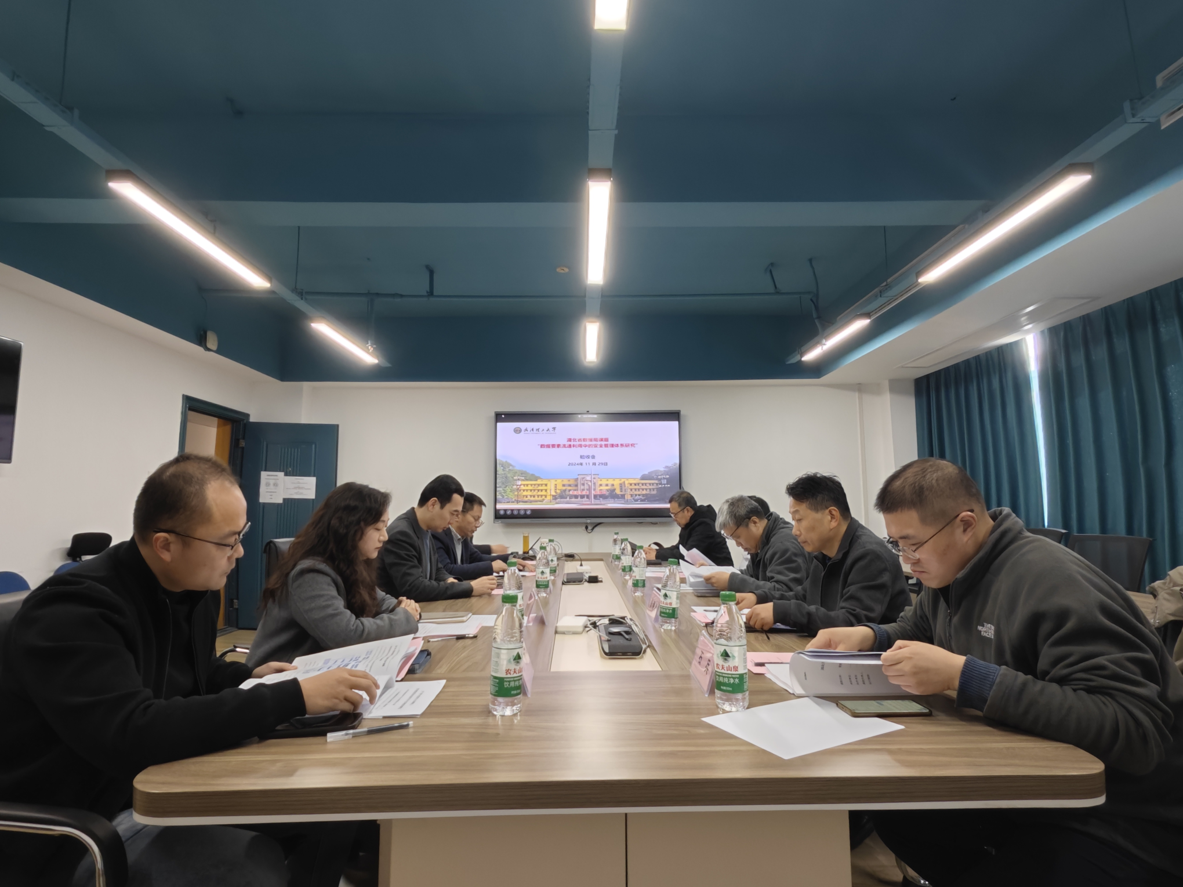 11月29日,由我院刘平峰教授主持的湖北省数据局课题“数据要素流通利用中的安全管理体系研究”验收会在学海楼1615会议室召开。武汉大学信息管理学院张李义教授、湖北工业大学计算机学院张明武教授、华中科技大学网络空间安全学院代炜琦副教授、武汉理工大学计算机与人工智能学院石兵教授、武汉理工大学管理学院王虎教授作为验收专家出席,湖北省数据局数字政务与应用处副处长罗雅明、武汉理工大学银娱geg优越会线路院长陈冬林教授、科发院人文社科项目管理科科长苏姝燕和课题合作单位武汉吧哒科技股份有限公司李浩出席会议。