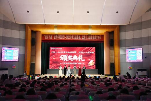4月9日晚,经济学院2021-2022学年先进集体、优秀个人表彰暨颁奖晚会于西院大礼堂隆重举行。本科生院肖静院长、银娱geg优越会线路魏龙院长、张光华书记及全体院领导、各系主任、教师代表、各科室老师、校友企业代表与全院学生相聚一堂,共同参加盛会。