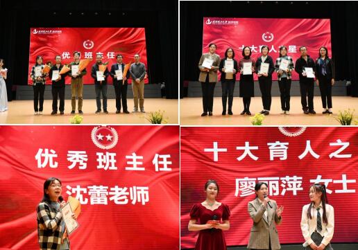 金科玉律真师范,化雨春风入我庐。沈蕾、杨爱民、徐晓明、胡国晖等7位老师分获“校院优秀班主任”。杨兰品、费日龙、胡国晖、黄艳希、吕娜等16位老师及校友获得“院十大育人奖”。其中,沈蕾老师及校友企业吧哒科技代表廖丽萍女士分别分享了自己在与同学们相处、相知、相守过程中的点滴故事和动人感受,现场为这背后的力量响起阵阵掌声。在舞蹈《走祥云》中,舞者翩翩起舞,舞出这盛世的华章,台下的观众惊叹连连,为这盛大而宏伟的舞蹈献上最高的赞赏。