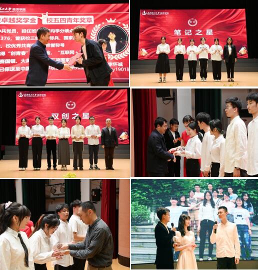 在一幕幕欢乐的暖场视频中,晚会正式开始。过去一年里,无数优秀经院学子争创佳绩,百舸争流。他们有强大的坚韧意志,有不歇的追梦脚步,他们凭着过人的才智和超群的意志,在成长之路书写着激情与梦想。晚会现场,校院领导和各系主任先后为“校卓越奖学金”“校五四青年奖章”“院三好学生标兵”“学院之星”获得者颁奖,获得“笔记之星”“双创之星”等经彩飞扬奖的57位同学依次上台接受表彰。其中,学术之星获得者李雪琴同学分享了自己从对于学术之路的憧憬、迷茫到收获的奋斗之路;笔记之星郭芯羽同学将自己在分类整理、重点突出的经验与心得进行了分享;实干之星闫平阳同学通过回顾自己从本科到研究生一直以来在校的学生干部成长经历,深刻感受到学生工作对于个人综合能力提升的特殊作用。晚会现场2022级本科生朗诵节目《青春的可能》,用文字展现青春,赞颂生命与奋斗的力量。