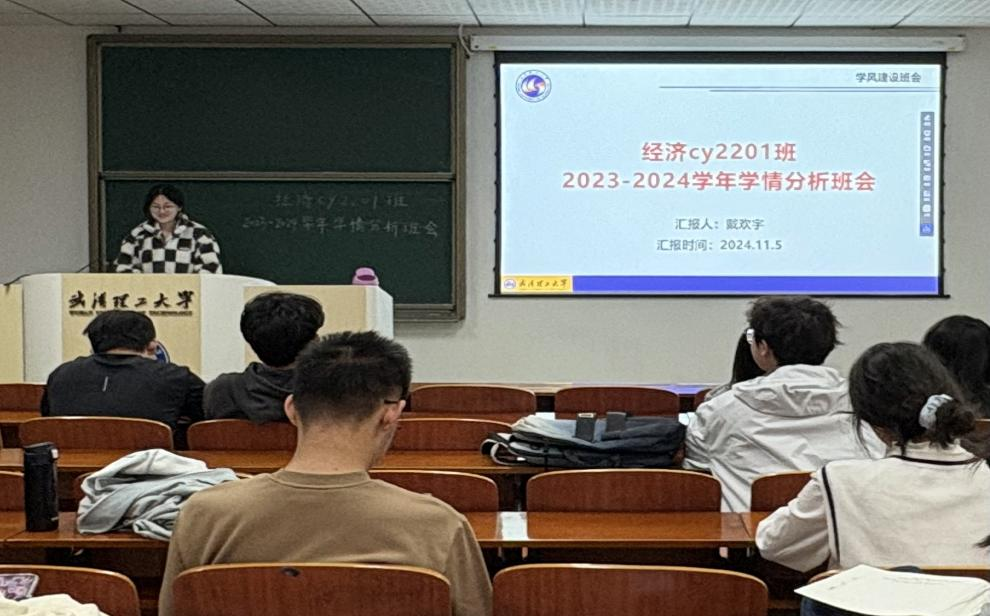 为营造积极学习氛围,促进班级学风建设,经济cy2201班于11月5日晚在爱特楼208教室开展2023-2024学年学情分析班会。本次班会由学习委员戴欢宇主持,经济cy2201班全体成员参会。