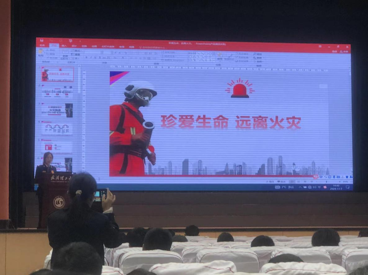 在消防安全宣讲环节,黄玲警官以“珍爱生命,远离火灾”为题阐述了常见火灾隐患、家庭防火措施、火场逃生等三个方面内容。黄玲警官结合实际案例,提醒同学们要定期检查电动自行车电池、安全充电用电,同学们也深刻认识到消防安全的必要性和重要性。