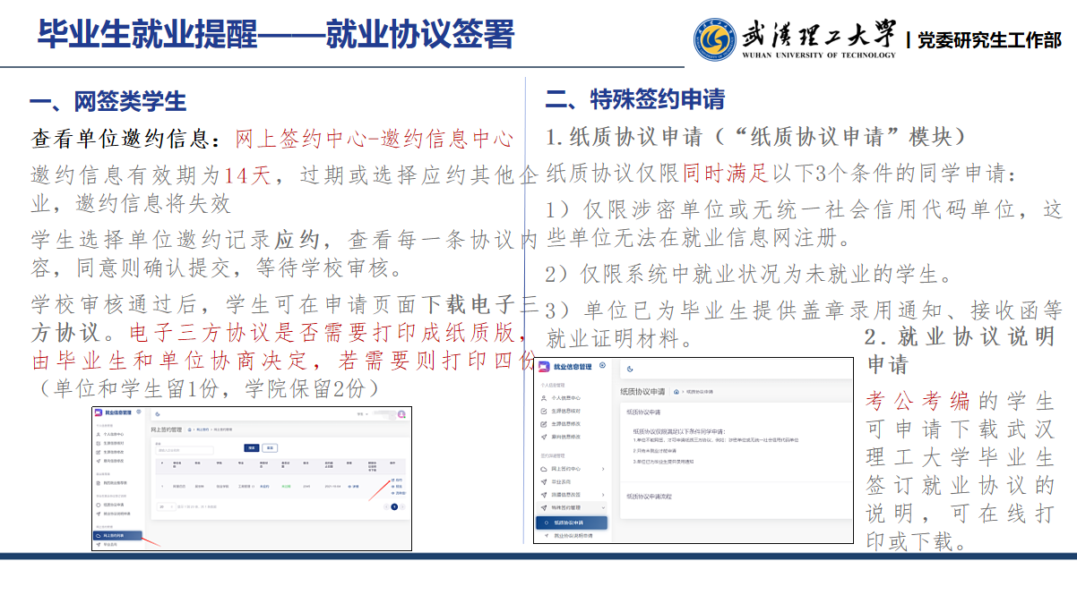 诸老师面向22级研究生就毕业和就业事项进行提醒。首先,段老师重点向同学们讲解了学硕和专硕的学位授予条件,提醒同学们做好学业规划;其次,关于就业协议的签署、就业手续的办理、就业信息的获取渠道等一些事项,段老师也进行了细致的讲解;最后,诸老师就近期武汉市属管培生的招聘信息做了简要提醒。