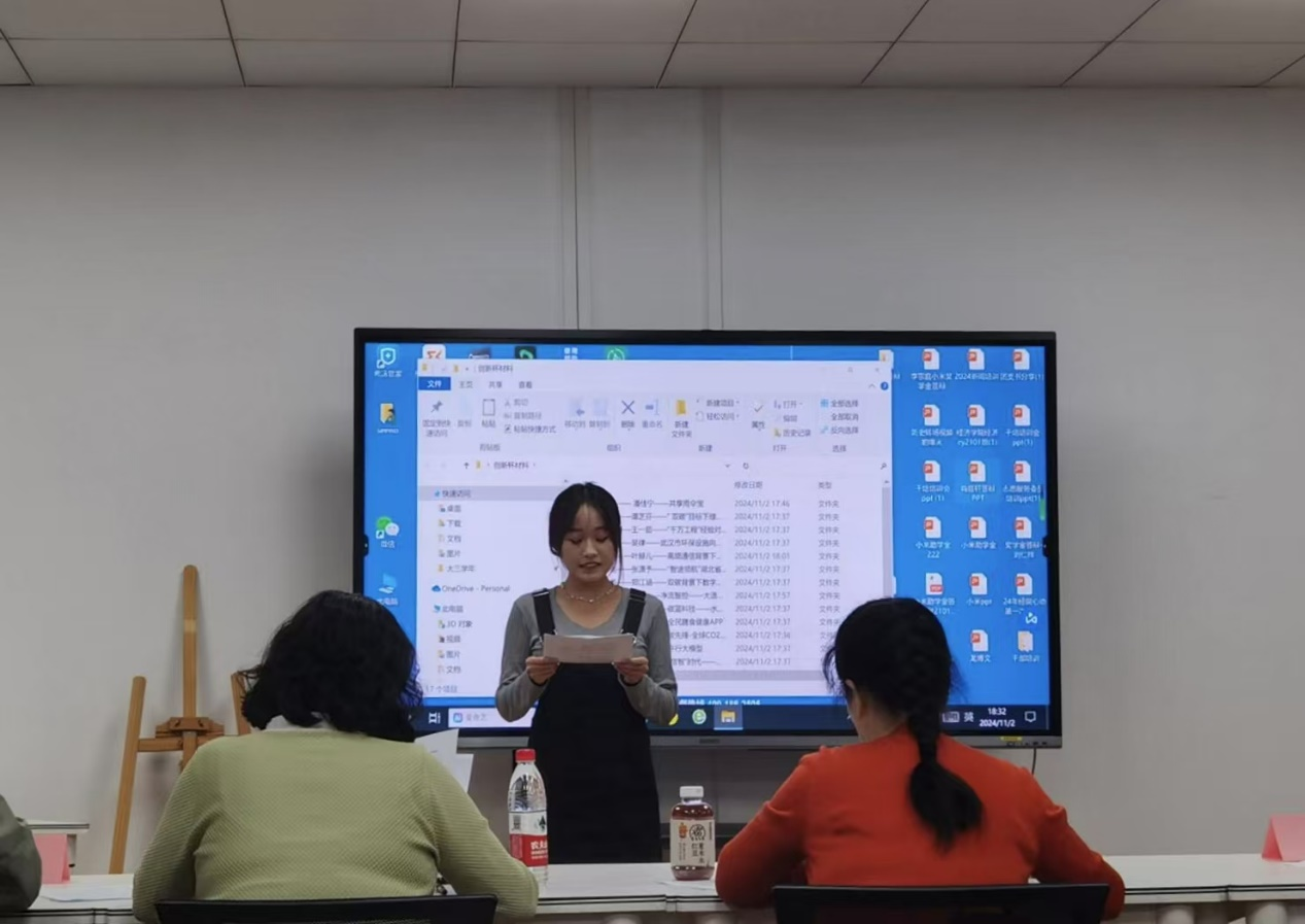 “创新杯”赛事答辩是学校“科技文化节”活动之一,参赛队伍紧密围绕队伍基本情况介绍、项目背景及意义、技术路线、创新点及项目成果等方面展开介绍。评委老师则依次从文本写作、PPT展示、学术规范、创新逻辑等多方面对各个参赛作品进行点评,为项目团队下一阶段工作开展提出建设性意见。