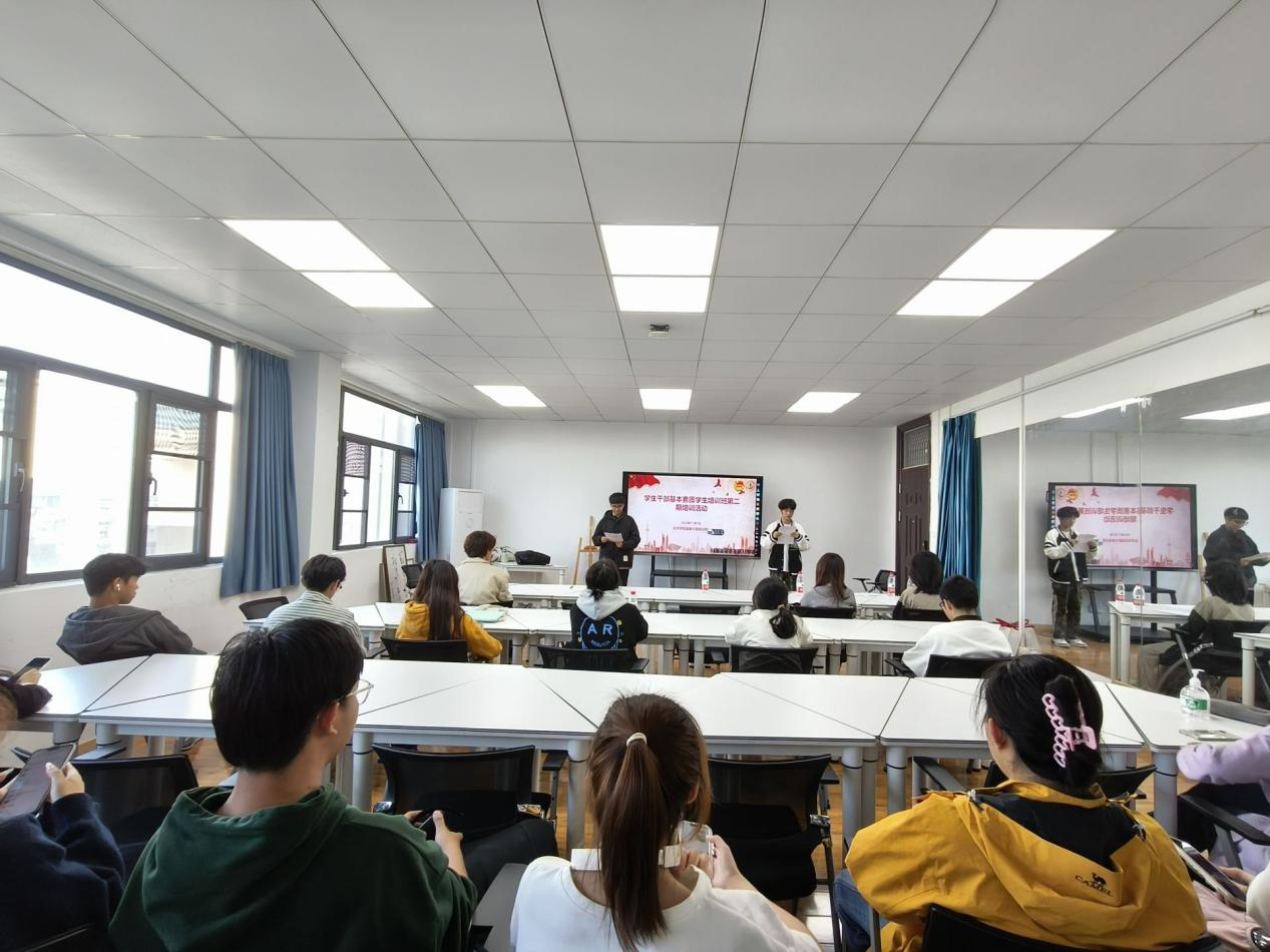为使2024级学生干部在日后更好地开展工作,全面提升学生干部的个人综合素质,团委干部培训部于11月7日下午,在鉴一教学楼606教室开展“经英课堂”学生培训班第二期培训活动。会议邀请学生会办公室部长周雨可、文艺部副部梁明羽、心协副部赵林霞、社会实践部副部禚鑫静及2024级各班班长、实践委员、心理委员参加。