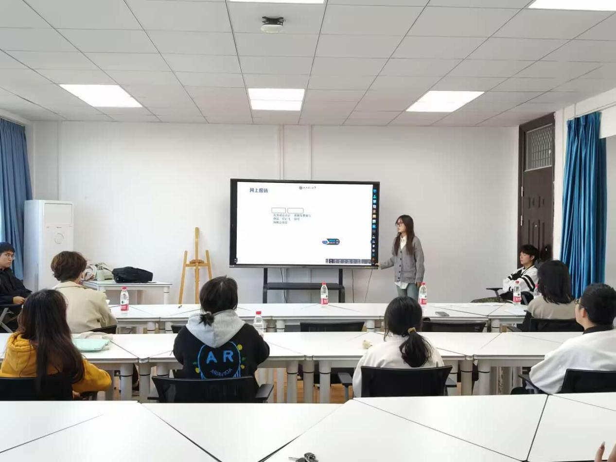 学生会办公室部长周雨可向同学们介绍了报账的相关事宜。她从报销流程、发票形式、网上报销方法等方面进行详细的讲解,并通过图片形式向同学们直观展示报账的正确操作方法。