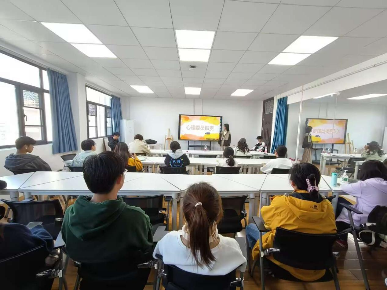 心协副部赵林霞为心理委员们作关于心理委员职责的讲解。她认为心理委员是示范者、宣传者、发现者、支持者,她希望同学们可以积极宣传有关心理健康的知识,及时关注班上同学的心理状况,增强服务意识,善于观察、乐于助人、认真履职、实事求是。