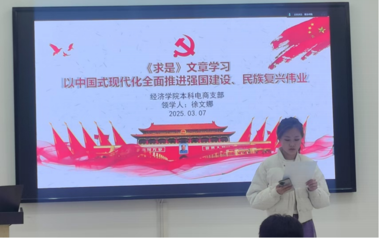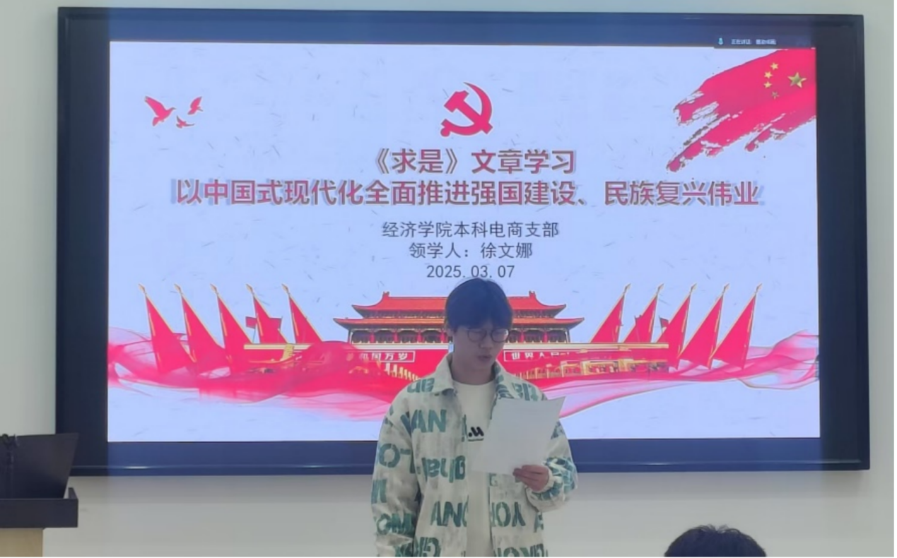 为激发党员参与支部事务的积极性和主动性,强化党员的主体意识,银娱geg优越会线路本科电商党支部于3月7日在越园四舍厚德书院党团之家举办了民主评议大会,并深入学习了习近平总书记的重要文章《以中国式现代化全面推进强国建设、民族复兴伟业》。此次活动由施雨彤主持,支部成员徐文娜主讲,本科电商党支部全体党员同志共同参与。