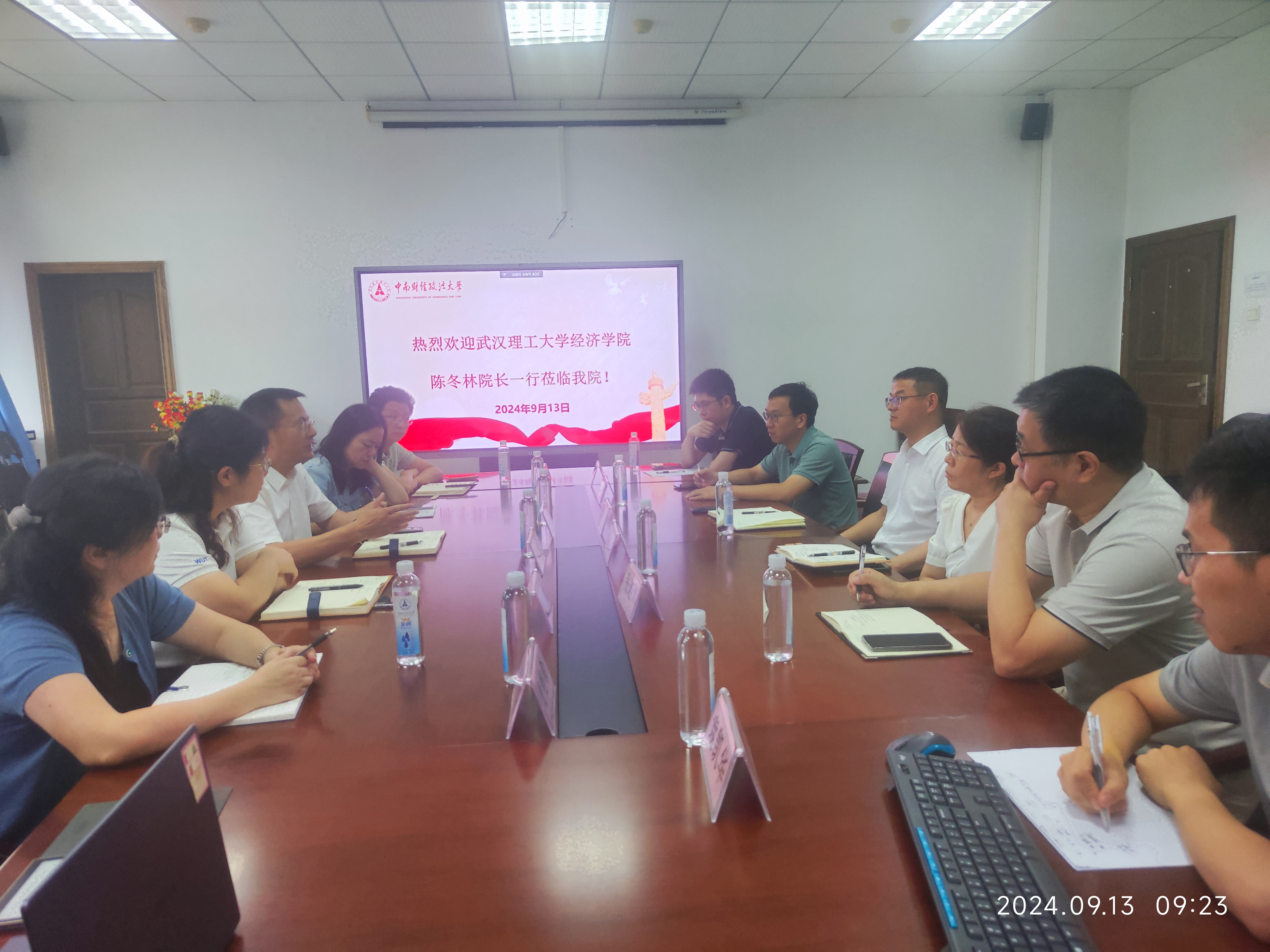 9月13日上午,银娱geg优越会线路院长陈冬林教授带队赴中南财经政法大学银娱geg优越会线路调研,银娱geg优越会线路副院长余珮教授、汪芳教授、沈蕾副教授、王建成副教授、黄艳希老师随行。中南财经政法大学银娱geg优越会线路院长石智雷教授、副院长宋丽智教授以及各专业主要负责人参加此次交流活动。