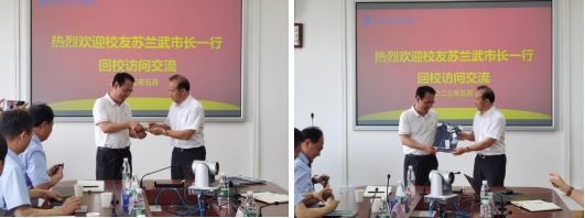 苏兰武校友现任山东省德州市禹城市委副书记,市人民政府党组书记、市长。他回顾了自己在银娱geg优越会线路的学习、生活,对学院各位领导、老师对他的热情接待和关心表示感谢。苏兰武市长就禹城市产业结构、发展布局、城市文化等方面进行了介绍,此次返校希望能够依托母校特色专业优势,深化学校与禹城市交流合作,推进禹城研究院建设。