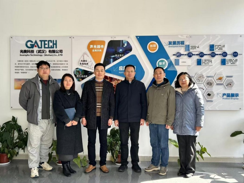 光奥科技(武汉)有限公司负责人、我院03级校友祝志刚对学院老师们来访表示热烈欢迎。座谈会上,祝总详细介绍了公司总体情况、发展历程、远景规划,他谈到光奥科技是一家专注于声光器件、光纤器件与系统的研发、生产、销售和技术服务为一体的国家高新技术企业,于2019年获得“国家高新技术企业”、东湖高新区科技“小巨人”企业称号,2020年获东湖高新区“小进规”企业称号,2020至2024年连续四年获东湖高新区“瞪羚企业”称号。公司产品将在光通信、高光谱成像、光谱仪在线监测、激光医疗、工业激光等应用领域发挥作用。