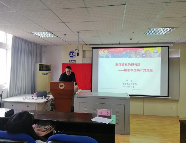 马克思主义学院薛炎老师以“制度建党的理与路——解读中国共产党党章”为主题为学员做报告。薛老师从制度与政党建设、中国共产党党章的基本结构、中国共产党党章的基本内容三个方面带领学员们学习中国共产党党章。薛老师强调党员要认真学习党章、严格遵守党章,争做一名合格党员。